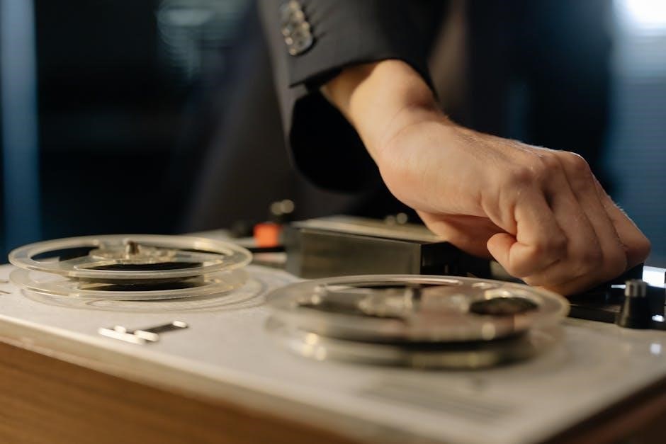 The Audio-Technica AT-LP120XUSB manual provides comprehensive guidance for optimal performance. Start by ensuring the turntable is placed on a stable, level surface. Connect the power cord and attach the pre-mounted AT3600L cartridge. For USB functionality, install the Audacity software and follow the manual’s step-by-step connection guide. To play records, lift the tonearm, align it with the desired track, and gently lower it. Adjust the counterweight for proper tracking force. Use the built-in phono preamp for direct connection to speakers or amplifiers. Switch between 33 and 45 RPM using the speed selector. Regularly clean the stylus and check for proper alignment to maintain sound quality.